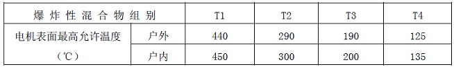 爆炸性混合物T1~T4溫度組別對應(yīng)表